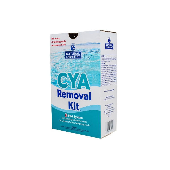 The CYA Removal Kit removes cyanuric acid (CYA, stabilizer, conditioner) out of pool water in a 2-step process.