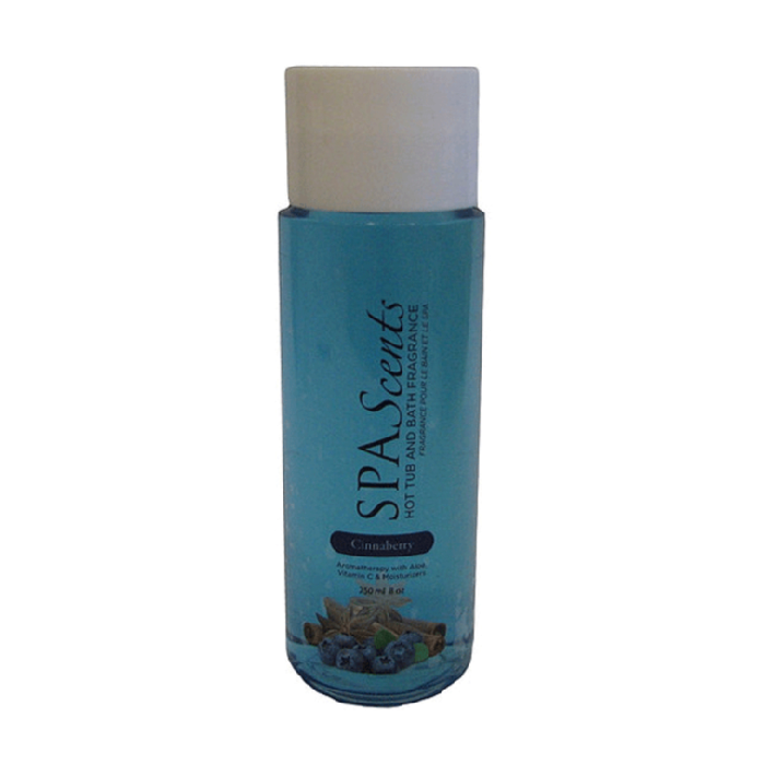 SPAscents Cinnaberry is an aromatherapy product containing aloe, moisturizers, and vitamin C used in hot tubs and baths.