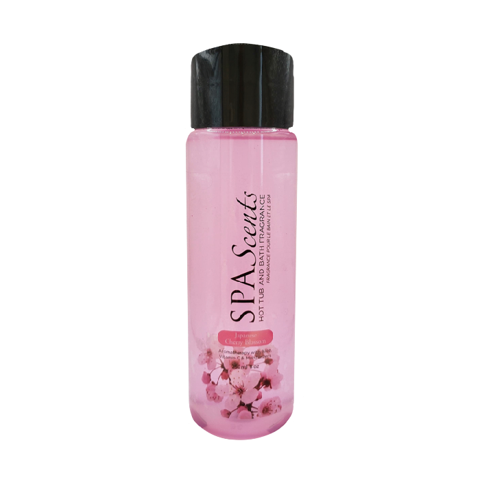SPAscents Japanese Cherry Blossom is an aromatherapy product containing aloe, moisturizers, and vitamin C used in hot tubs and baths.