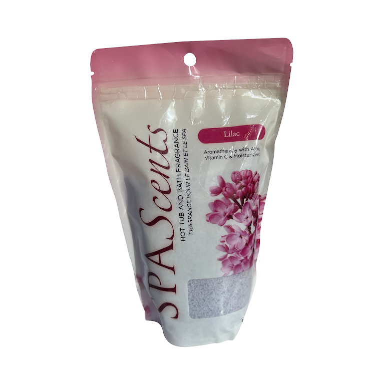SPAScents Lilac is an aromatherapy product used in hot tubs and baths containing aloe, vitamin C and moisturizers. Add 2-3 tbsp to the hot tub, spa, or bath.